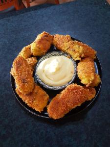 So had to wait till today to cook those rosemary crumbed Halloumi chips with fresh-made aioli.