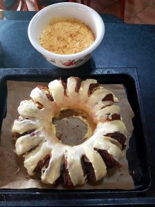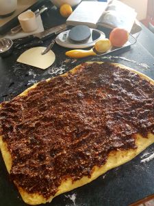 There was rather a lot, so I was generous with spreading the filling onto the dough – too generous as it turned out. The cake was a bit overpoweringly rich.