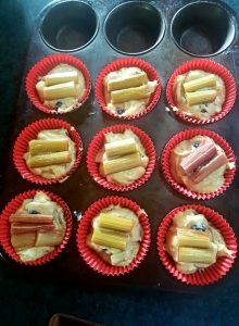 Also baked later – blueberry and apple muffins topped with pieces of the roasted rhubarb.
