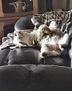 Incidentally, Poppy the Puppy was exhausted yesterday after the class – it’s hard work sitting outside the cooking school, staring at the windows and door, wishing and waiting for someone, anyone in fact, to come out and pat her. She was all tuckered out as can be seen from the photo. Funny little dog.