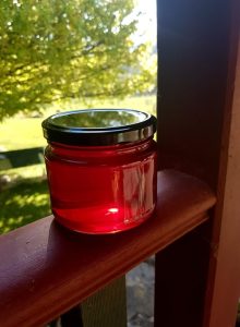 Standing proud in the morning sun – just one of the many jars of quince jelly made yesterday.