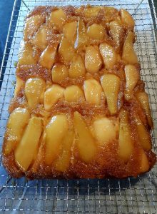 First thing today – a honey caramel upside down pear slice, prepared to send to a neighbour.