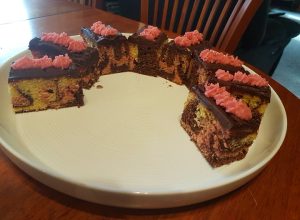 I love marble cake – as it’s cut each slice is a revelation with its individual patterning.