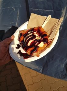Another treat – from Yeastie Beastie – in this instance – a fresh cooked sourdough doughnut filled with vanilla custard, then generously drizzled with homemade blackcurrant jam. Oh my word – simply sumptuous!!