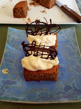 Today’s offering – spiced banana cake, containing more than two cups of mashed banana, therefore quite tasty. It was still too warm to ice by the time we needed to leave.