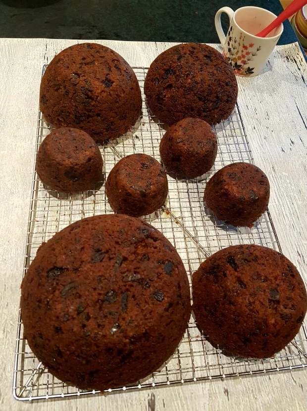 I wanted to make different sizes, some for family to share, some as small gifts.Just look at those tiny (300g capacity) tins. I bought them last year from the local hardware store. They are incredibly good, non-stick and make perfect little puddings. I actually wish I’d bought more as they are ideal for single serves at the festive table – in the new “normal” of Covid considerations, this is a bonus.