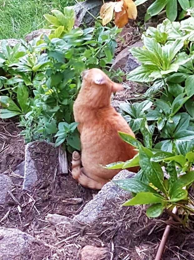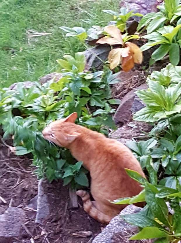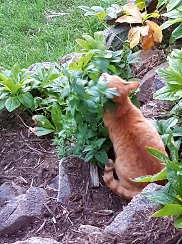 He has always loved the cat mint we planted for him.However for the past year or so it’s been decimated by wildlife. These past few days it’s grown back with a vengeance.