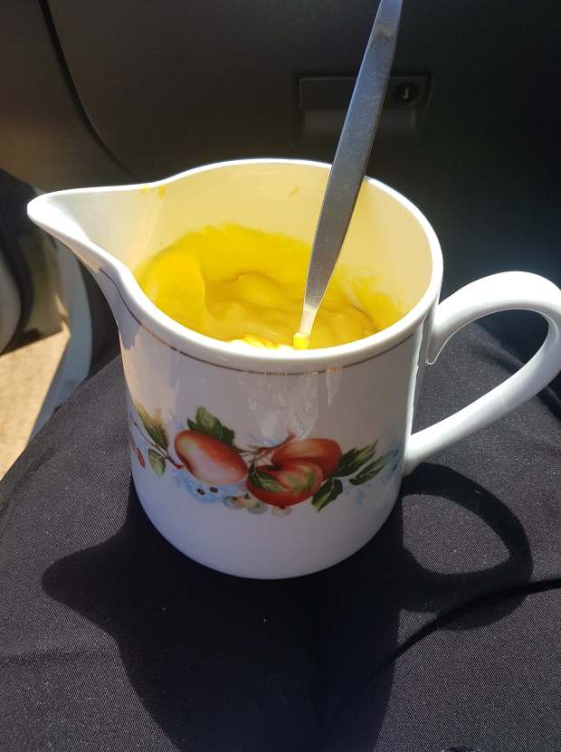 Act 3 (of course) – a large jugful of creamy egg custard, lightly flavoured with lime, to serve alongside each of the above-mentioned sweet treats.