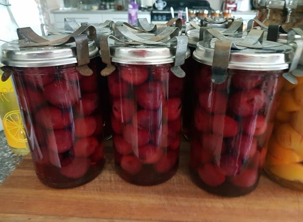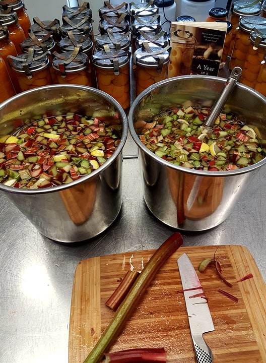 there’s been a change of gear from bottling fruit today – two batches of sparkling rhubarb have been prepared and now left to stand the requisite 48 hours before straining and bottling.