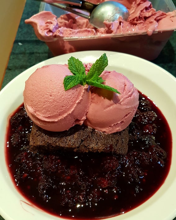 So dessert turned out to be blackberry compote with chocolate sponge served with a hastily prepared blackberry/currant ice cream.