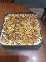 Invention of a new recipe for the Wednesday morning tea platter. What to call this? Not really sure Caramel Custard Cake with Peaches maybe?