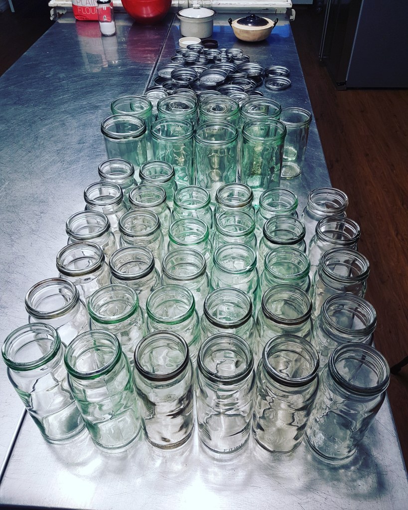 Last load is in the dishwasher for a hot hot wash so they will all stand at the ready to preserve apricots as soon as this season’s harvest arrives. Bliss. Can’t wait!