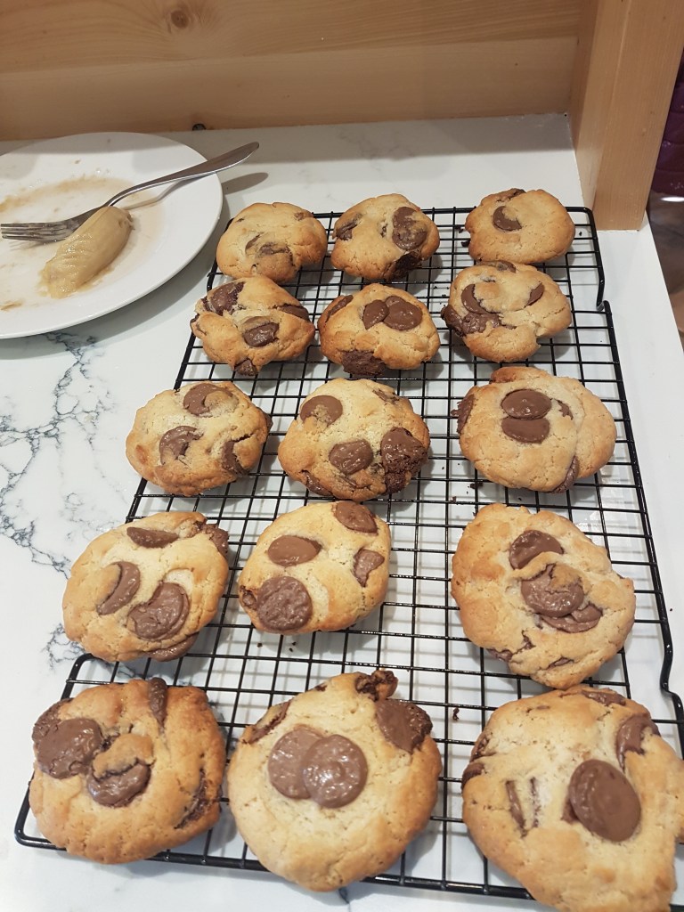 And so the dough came together; a bit of an unusual texture, but then we added a very generous amount of dairy free choc buttons and I hoped for the best.