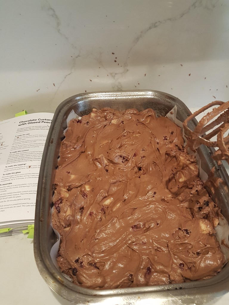 Anyway, this morning back on track; new recipe – well kind of. It is based on one from The Comfort Bake, just the chocolate cake batter part.