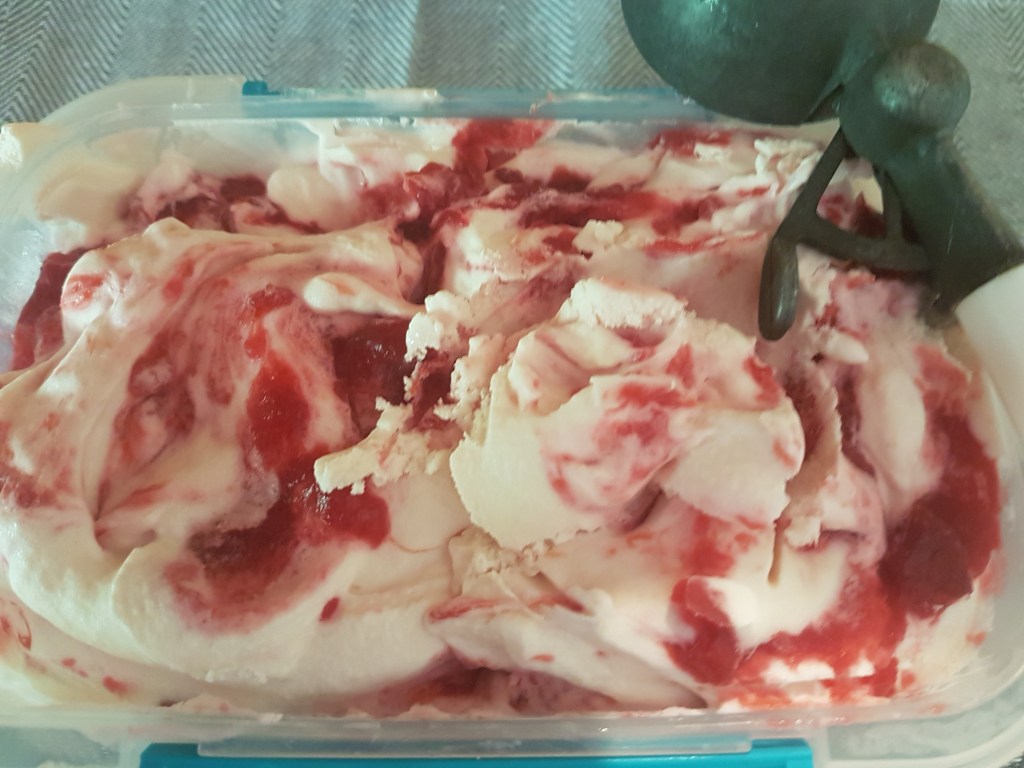A final cupful of the (cooled) stewed cherry plum mixture flavoured a rich, creamy ice cream, the perfect accompaniment to the crostada.