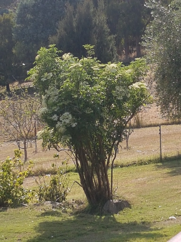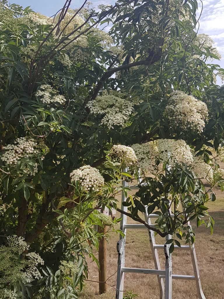 In the unusual microclimate on this little patch of earth, the two smallish elderflower trees have burst into flower all over. More cordial syrup perhaps? (I use it to sweeten and flavour homemade ice cream.)