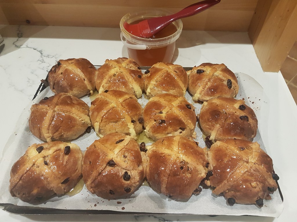 If you would like an easier option for the crosses on the buns, you could use a sheet of ready rolled short crust pastry. It won’t be quite as tasty as the homemade pastry version, but still jolly good and far better than the flour/water paste crosses.