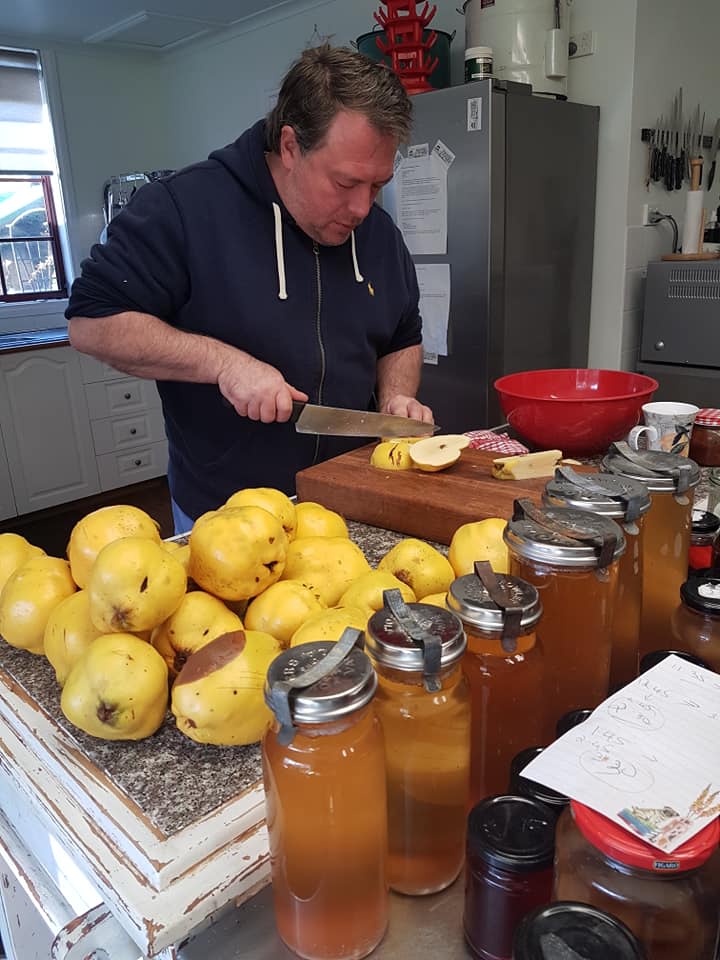 More quinces on the agenda today. Friends Michael and Roberto also came to preserve their harvest of quinces and apples.