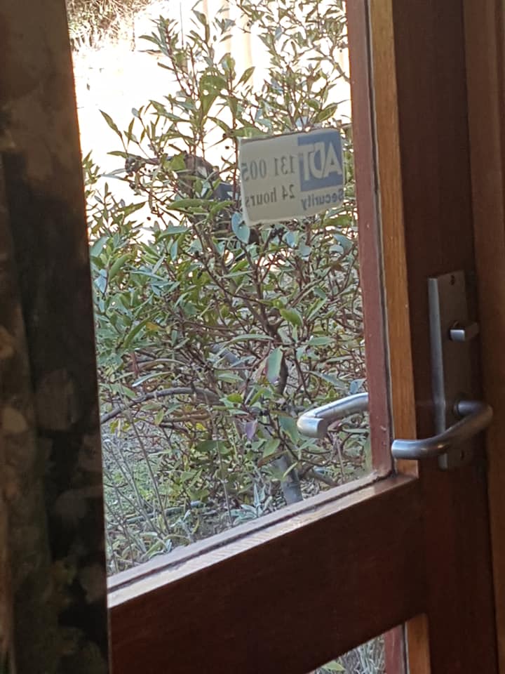 From the other kitchen, a photo taken surreptitiously through the sitting room door. This feathered thief, a Currawong, is enjoying a feast of Tasmanian pepperberries.