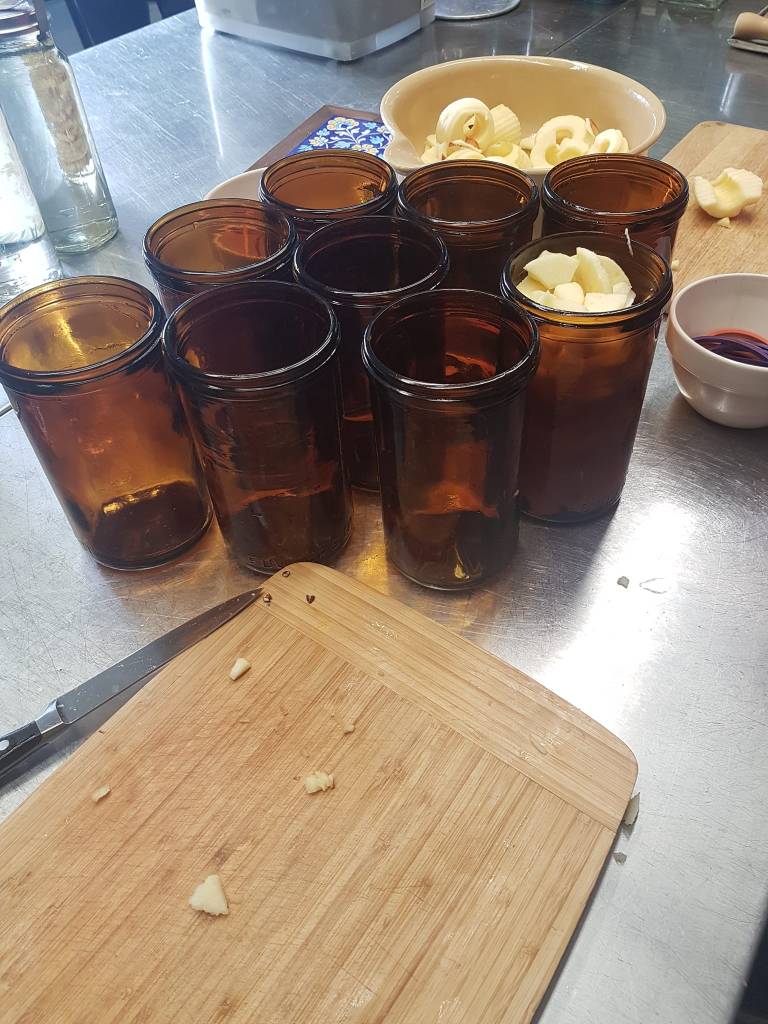 Four batches of jars of apples are now in their respective preservers, very satisfying.