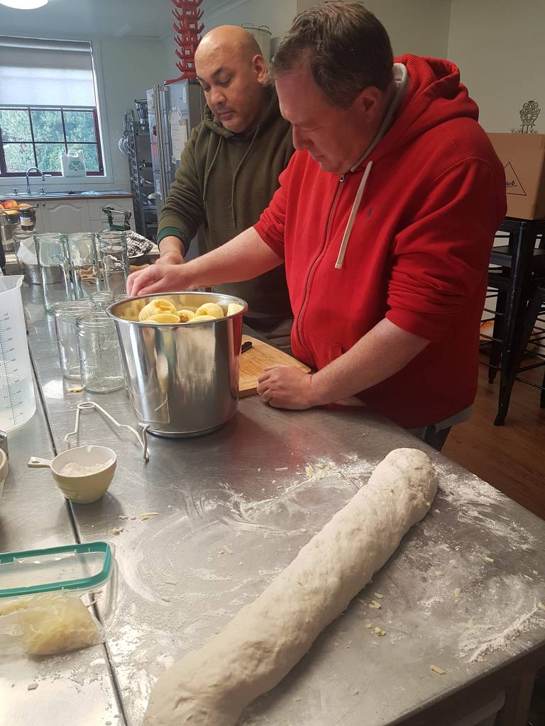 Michael and Roberto came to help us bottle and preserve the last 3 crates full of apples.