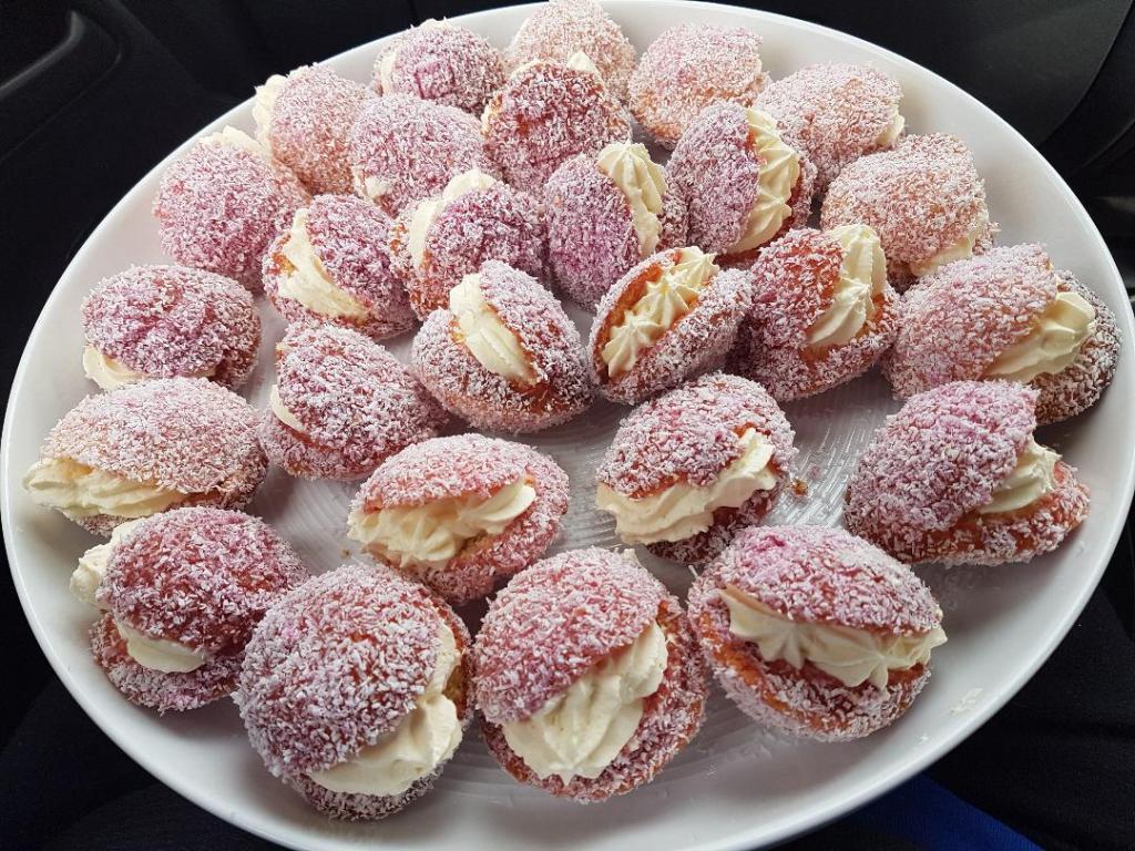 Place the coconut in a bowl. Roll each of the cakes in the cooled jelly and then roll in the coconut. Place on wire rack to set.