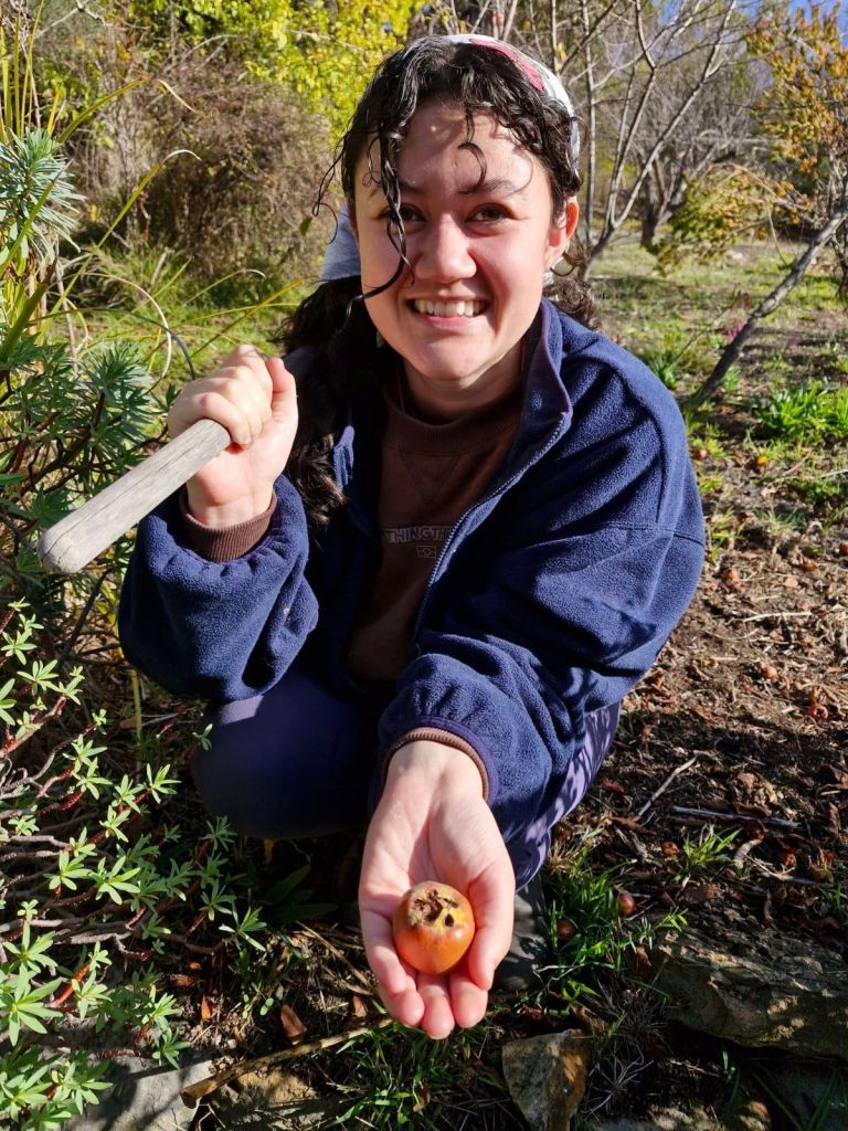 She and friend Lizzie, pictured here, spend a lovely day gathering them from amongst the leaf litter and straw under the tree.