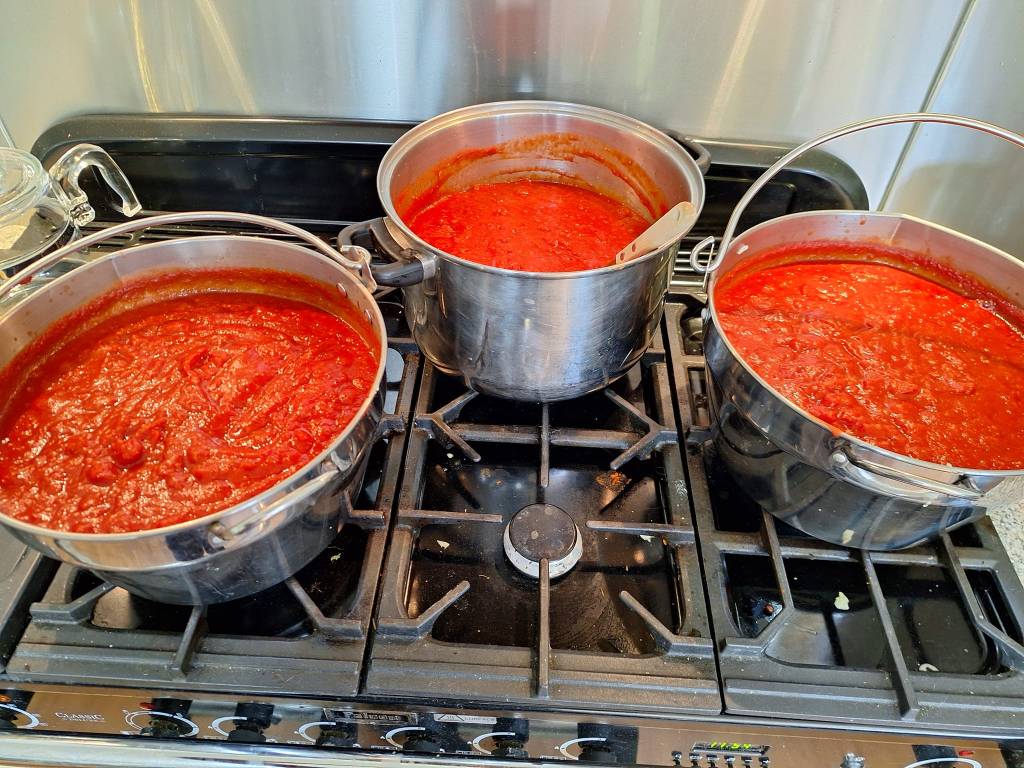 For instance, last Sunday – pickled onions and pickled zucchini slices plus more than 25 litres of passata (or more correctly tomato sauce component of pizza topping).