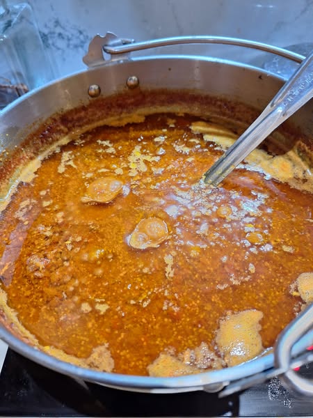 First – yersterday, luscious local field tomatoes, chillies from a friend’s garden a d our own garlic, made possible a double batch of Kasoundi.