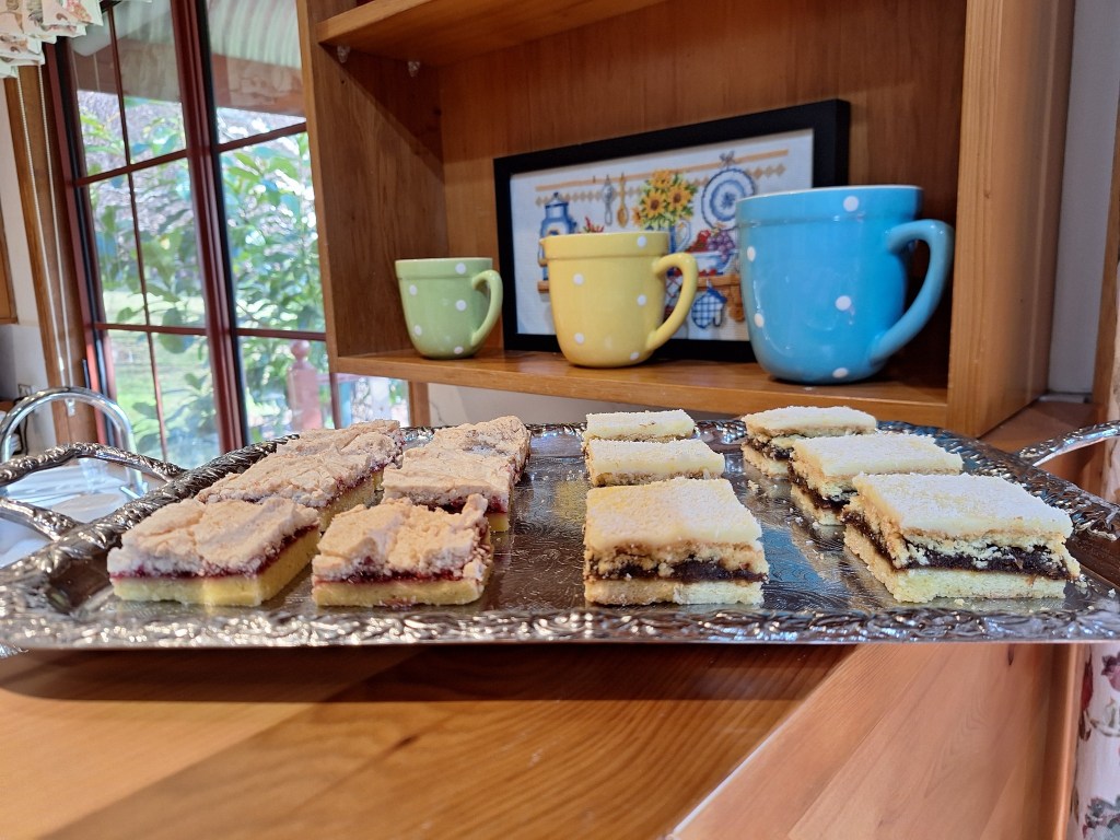 Never mind, hopefully they will still enjoy these old fashioned favourites I baked for them the night before – raspberry shortcake and date slice with lemon butter icing.