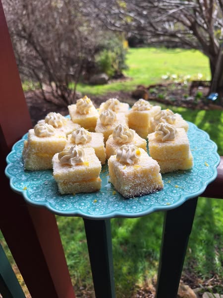 Topped with a tiny swirl of whipped cream and a sprinkle of lemon zest.
