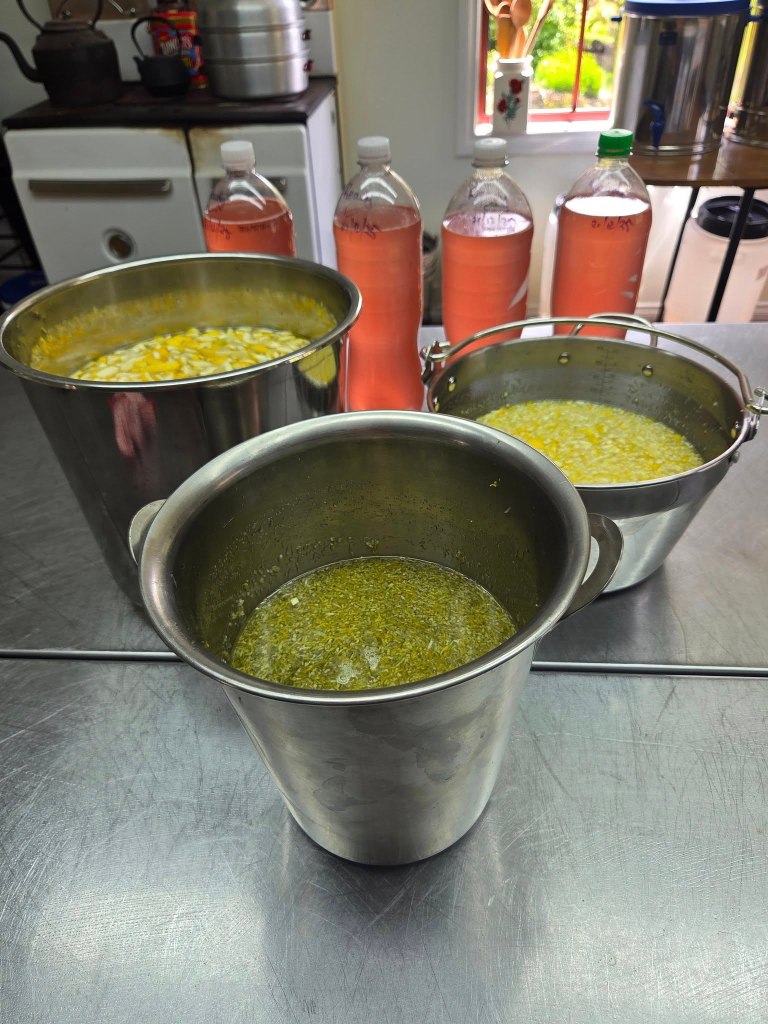 There’s a batch of lime cordial syrup, this evening to be strained and bottled.
