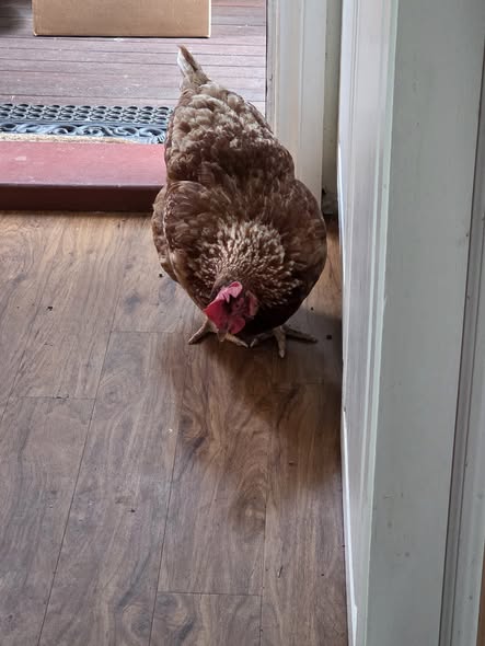 This chook, Flopsy by name, loves to keep us company wherever we are. She decided things looked interesting and decided to come into the kitchen.
