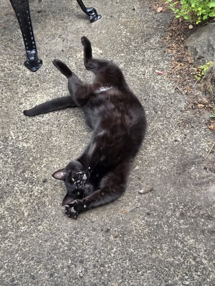 After a quick check on proceedings, ex-feral Maggie May decided she would rather be outside rolling in the warmth of the sunshine.