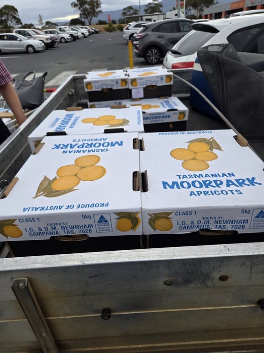 Up at the crack of dawn so we had time to feed the menagerie here before heading out on our annual pilgrimage to Lowdina Orchards to buy Moor Park apricots.