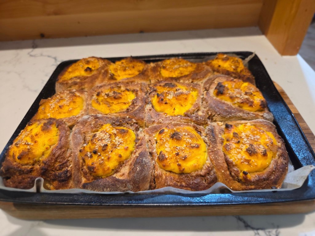 I had thought about making cinnamon scrolls but why not combine the two concepts? Of course there must be custard.