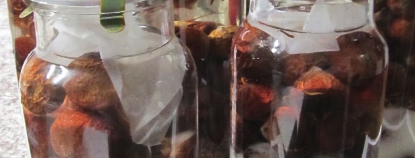 It's that time of year again! The medlars that have been 'bletting' on straw for weeks were finally ready for making specialty-of-the-house Medlar Liqueur. We now just need to wait 6 months until it's ready to drink. The slow cookers on the bench in the background are in readiness for the class here on Saturday. … Continue reading Medlars bletted at last – medlar liqueur coming up!