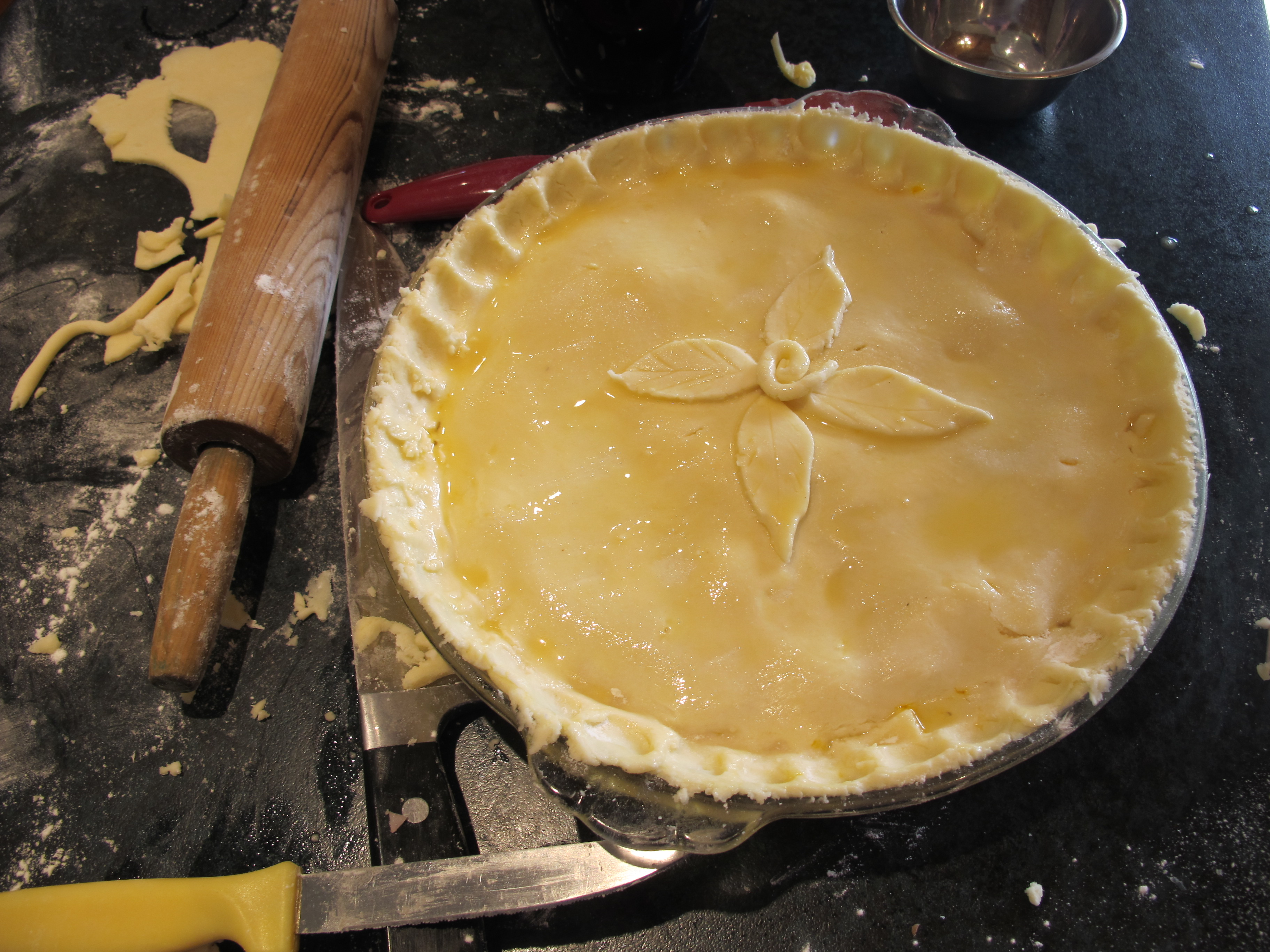 Anyway, for anyone who wants or needs the pastry recipe, here it is. To make the pie, I just piled in bacon and eggs until the dish was full, along with a little grated dairy free cheese, dampened the upper edge of the pastry so the top one would stick, then baked it at 200 degrees C for 10 minutes, and then a further 20 minutes at 160 degrees until it was golden and the eggs set.