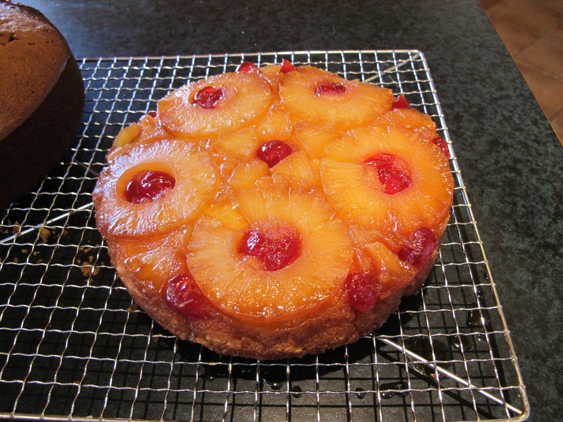If nothing else, it’s a way to make the best of the humble tin of pineapple rings. By all means use fresh pineapple if you are lucky enough to have one, in which case you will need to use milk instead of pineapple juice in the cake batter.